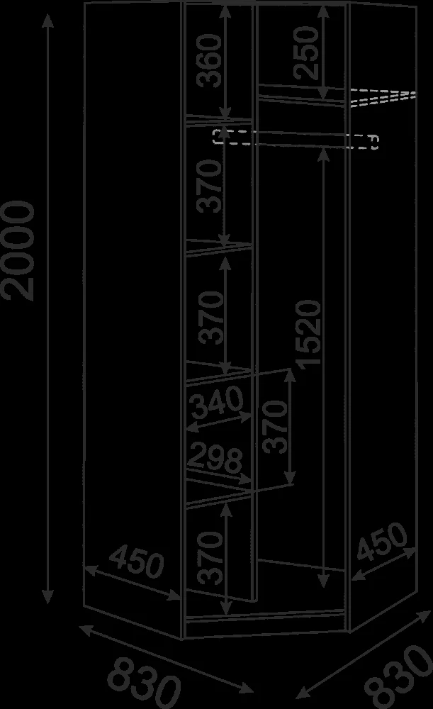 *Размеры (ВхШхГ), мм:2000х830х830 мм