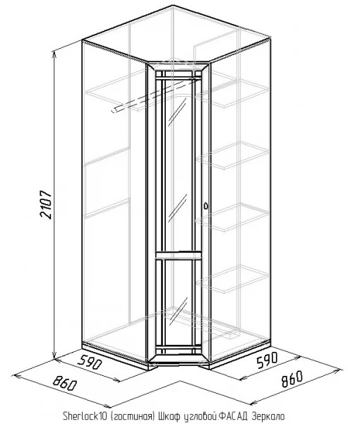 Шкаф угловой 10 с зеркалом Sherlock в Урае