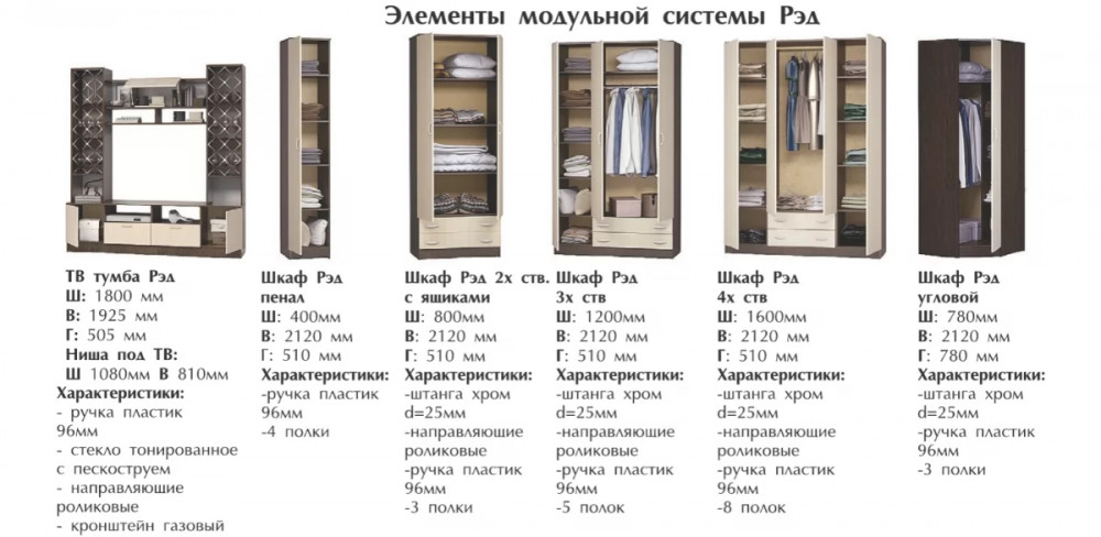*Дополнительная опция - Зеркало (1300х300 мм) заказывается отдельно на любой шкаф из серии «Рэд»