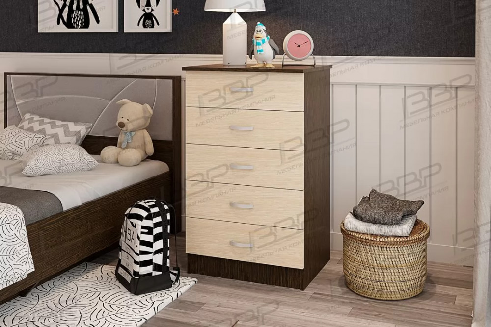 Практичный и небольшой комод Мини впишет в интерьер любой спальни, гостиной и даже прихожей. Комод имеет 5 небольших выдвижных ящиков, изготавливается из ламинированного ДСП