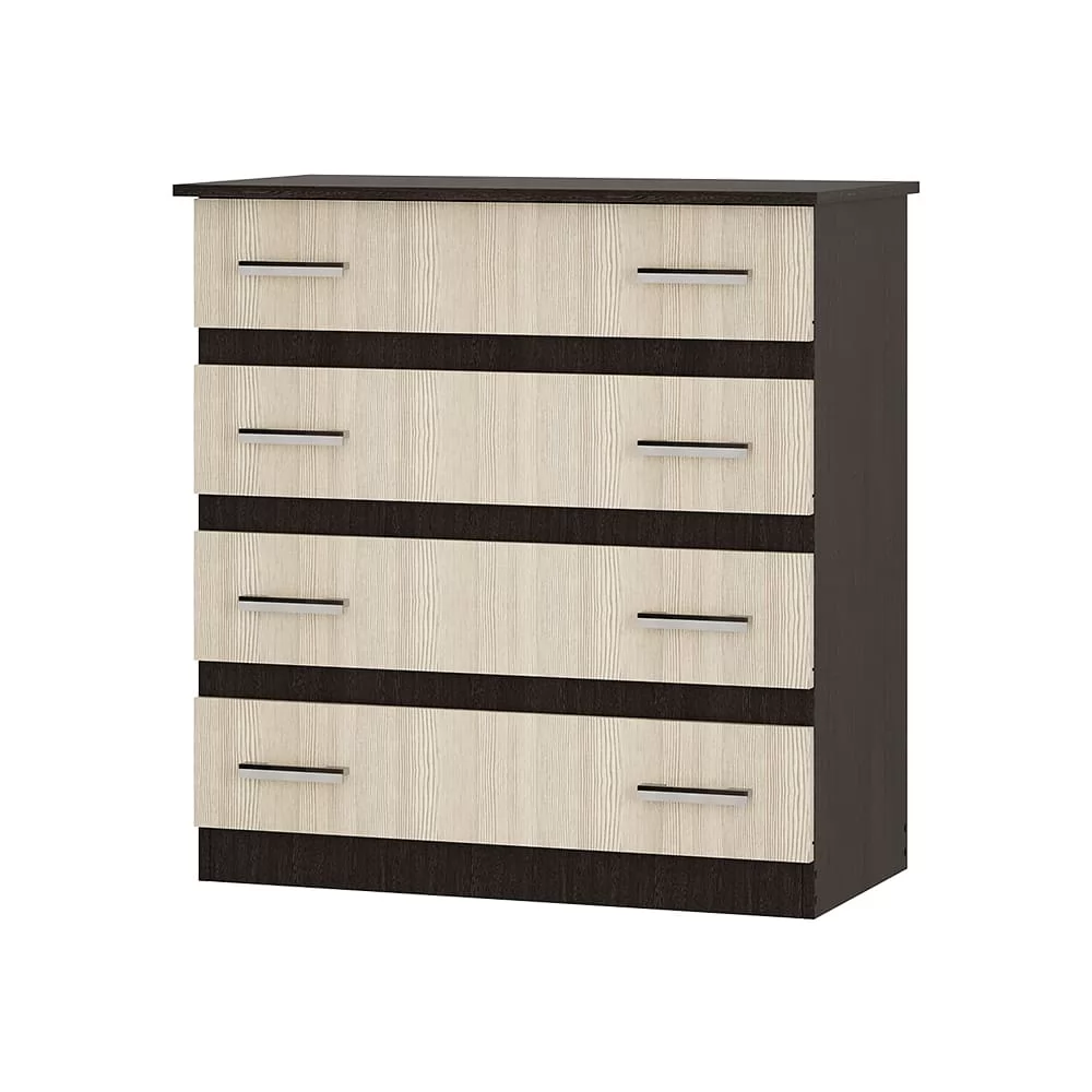 - комод состоит из четырех выдвижных ящиков, на каждом из которых расположены две ручки,
