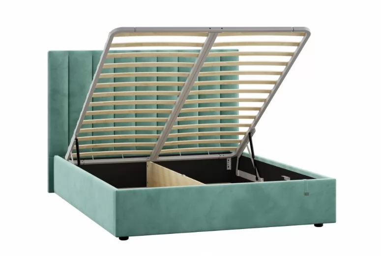 Подъемный механизм легок в управлении, а вместительный короб внутри кровати подойдет для хранения подушек, белья и других вещей. Мягкие тканевые ручки облегчают процесс подъема основания.