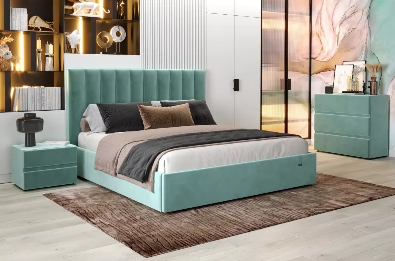 Кровать «Ingrid»  подойдет для современных интерьеров спален, впишется в стиль ретро и скандинавский минимализм. Обивка будет отлично сочетаться с любыми цветовыми оттенками отделки и мебели. Кровати выполнены в нейтральных и ярких тканях велюр, что позволяет подобрать подходящий вариант почти под любой интерьер. Изголовье имеет прямоугольную форму, повторяя очертания кровати. Дизайн модели отличается высоким изголовьем с вертикальными строчками и углублениями.