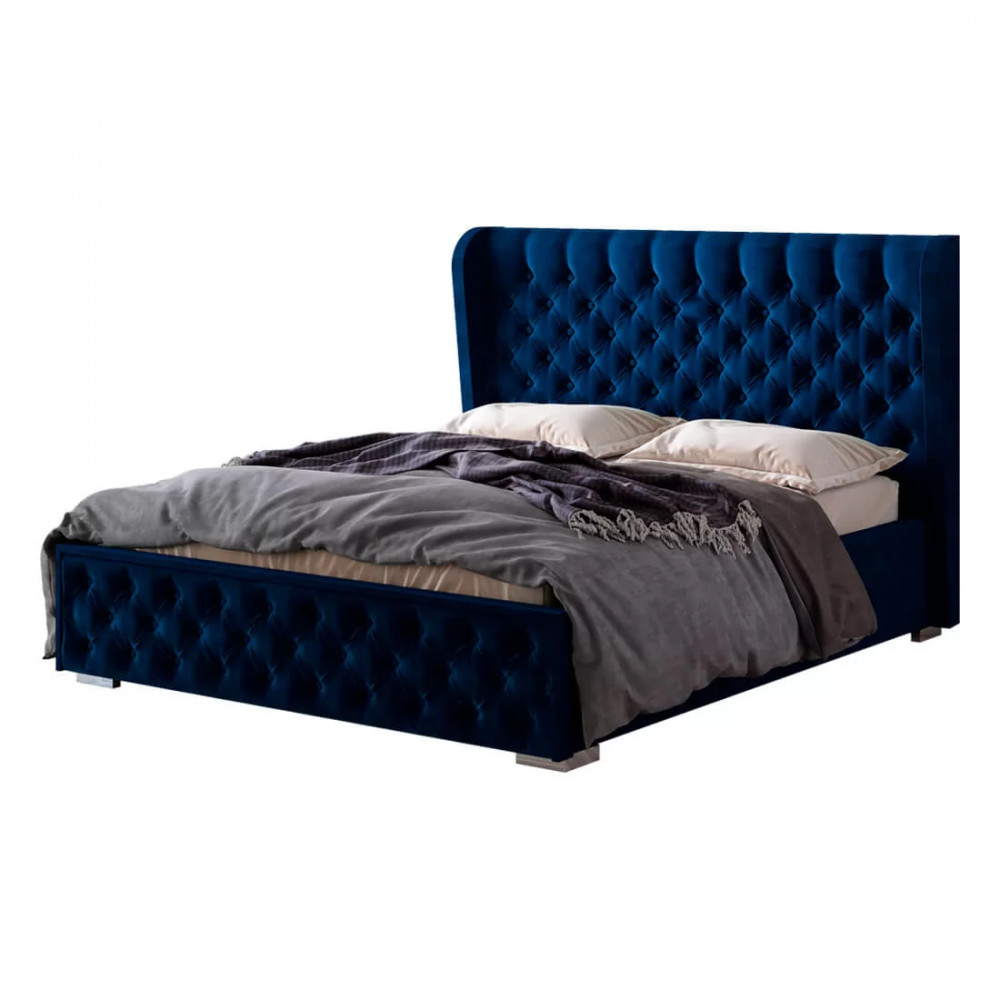 -корпус изделия выполнен из ЛДСП высокого качества, -в дизайне модели используется велюр приятного цвета графит, -высокое мягкое изголовье имеет декоративную стяжку с пуговицами, такой прием придает кровати элегантности.