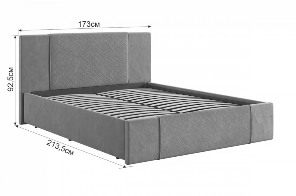 Для каркаса кровати предлагается два варианта комплектации: с основанием на опорах и матрасом на выбор, либо с основанием с подъемным механизмом, настилом и матрасом на выбор. Рекомендуемый размер матраса составляет 1600х2000 мм, что оптимально подходит для данной модели.