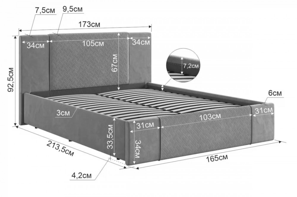 Кровать (каркас) Хлоя 160х200 см латте (велюр) в Урае