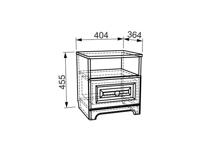 Прикроватная тумба – самый маленький, но в то же время незаменимый модуль серии «Белла». Используйте его как подставку для ночника, а также для хранения самых необходимых вещей как в открытой нише, так и в закрытом выдвижном ящике. Столешницу из МДФ украшает фрезеровка.