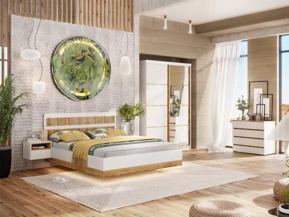 Спальный гарнитур Дубай Белый жемчуг/Дуб Вотан в Урае