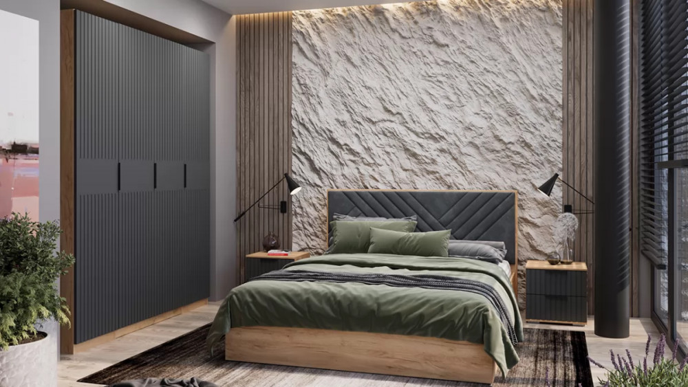Спальный гарнитур «Хилтон» №2 Дуб Крафт золотой, Графит матовый в Урае