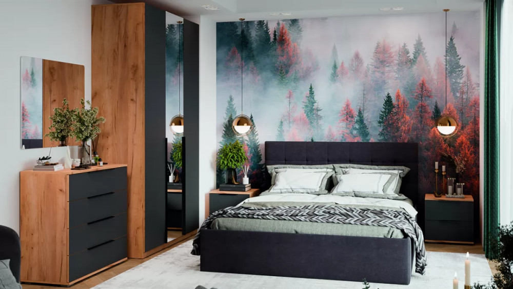 Спальня «Джоли» Дуб Крафт золотой, Графит матовый в Урае