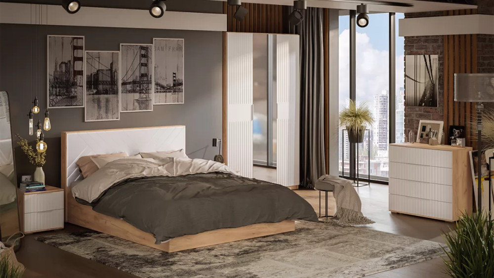 Спальня «Хилтон» Дуб Крафт золотой, Белый матовый в Урае