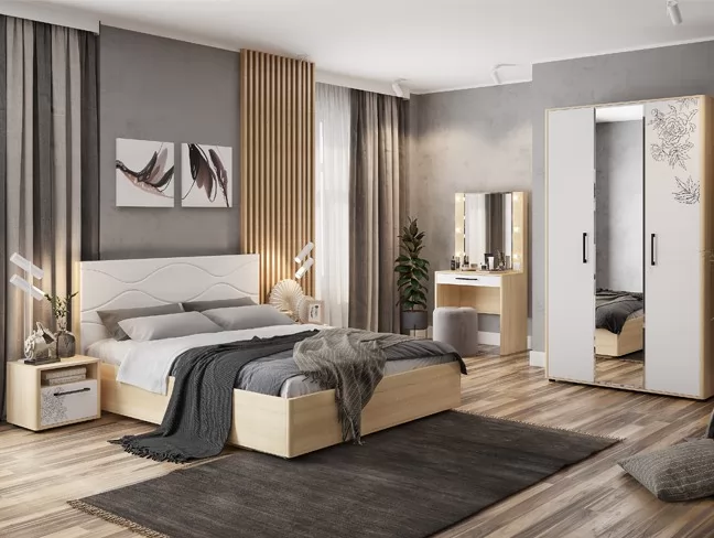 Оригинальное и стильное трюмо из серии «Зара». В зеркало с широким фацетом, встроена подсветка, как в столах профессиональных визажистов. Дополнительно имеется выключатель, розетка для фена и выдвижной ящик для украшений и косметики. Закругленные углы, подчеркивают общий стиль коллекции.
