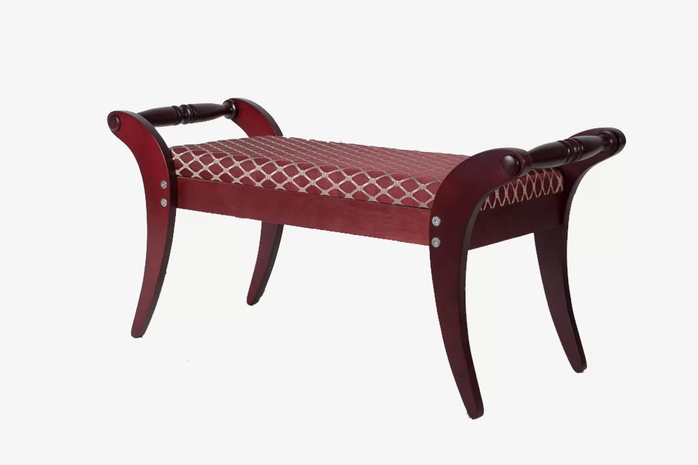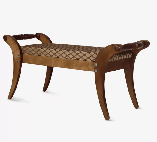 Банкетка из массива представлена в трех разных оттенках с мягким сидением в износостойкой жаккардовой обивке, а также дополнена удобными ручками.